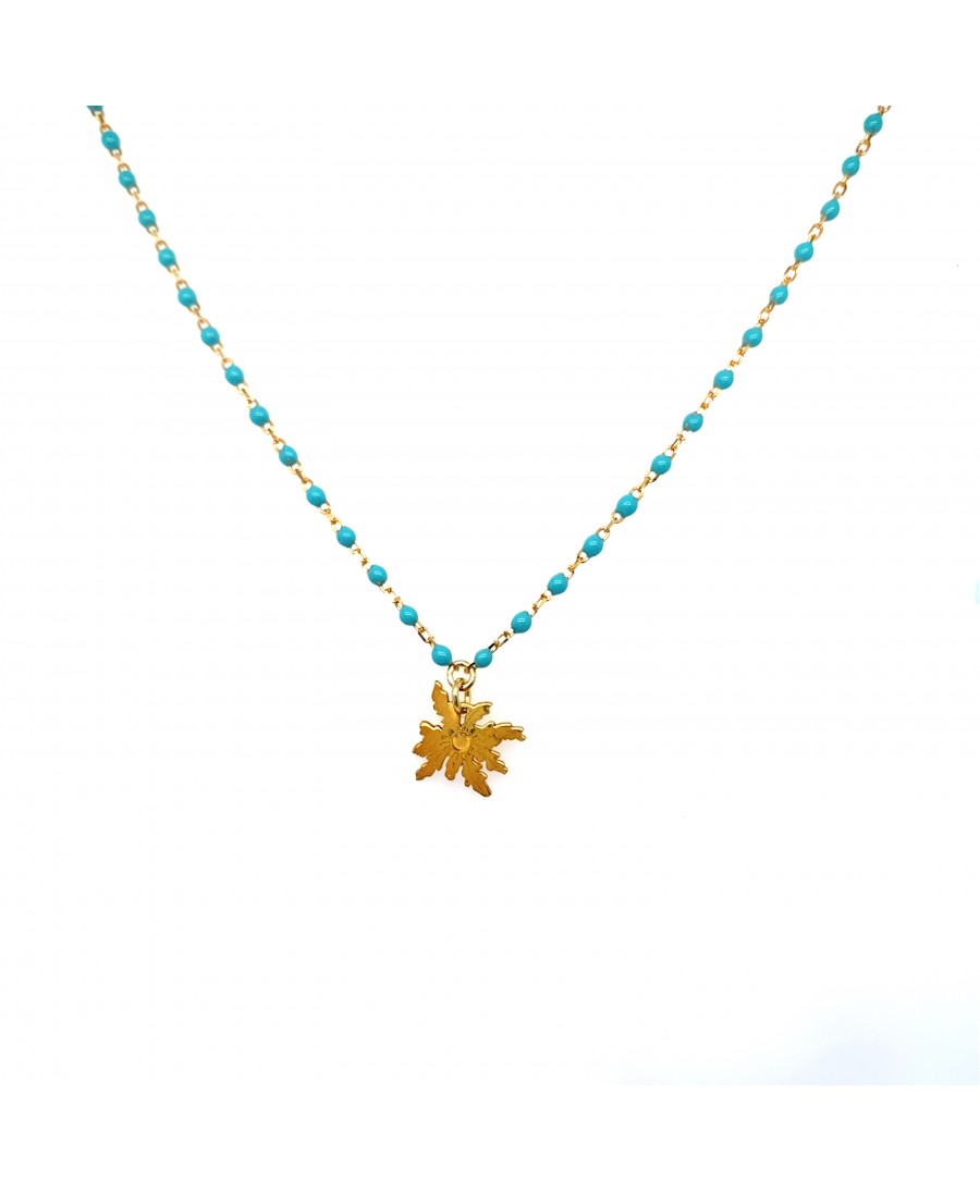 Collier Eguzki Lore en argent plaqué or jaune laque bleue