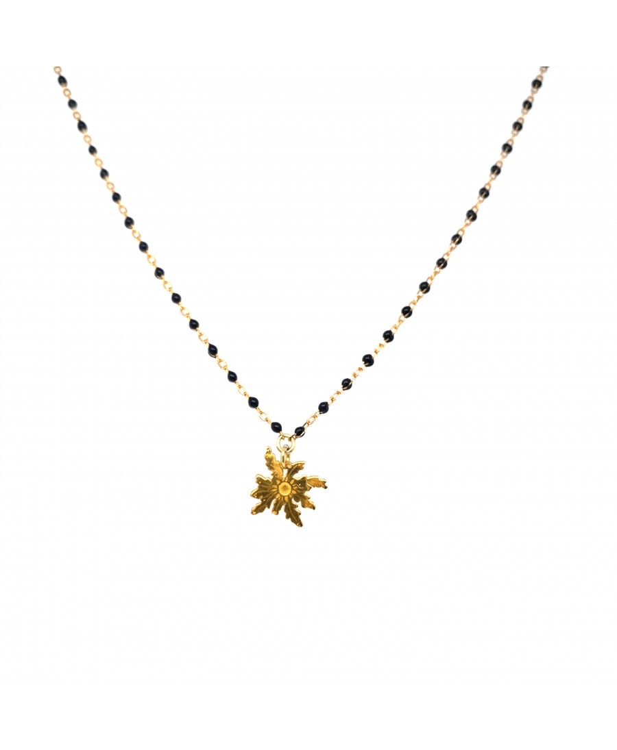 Collier Eguzki Lore en argent plaqué or jaune laque noire